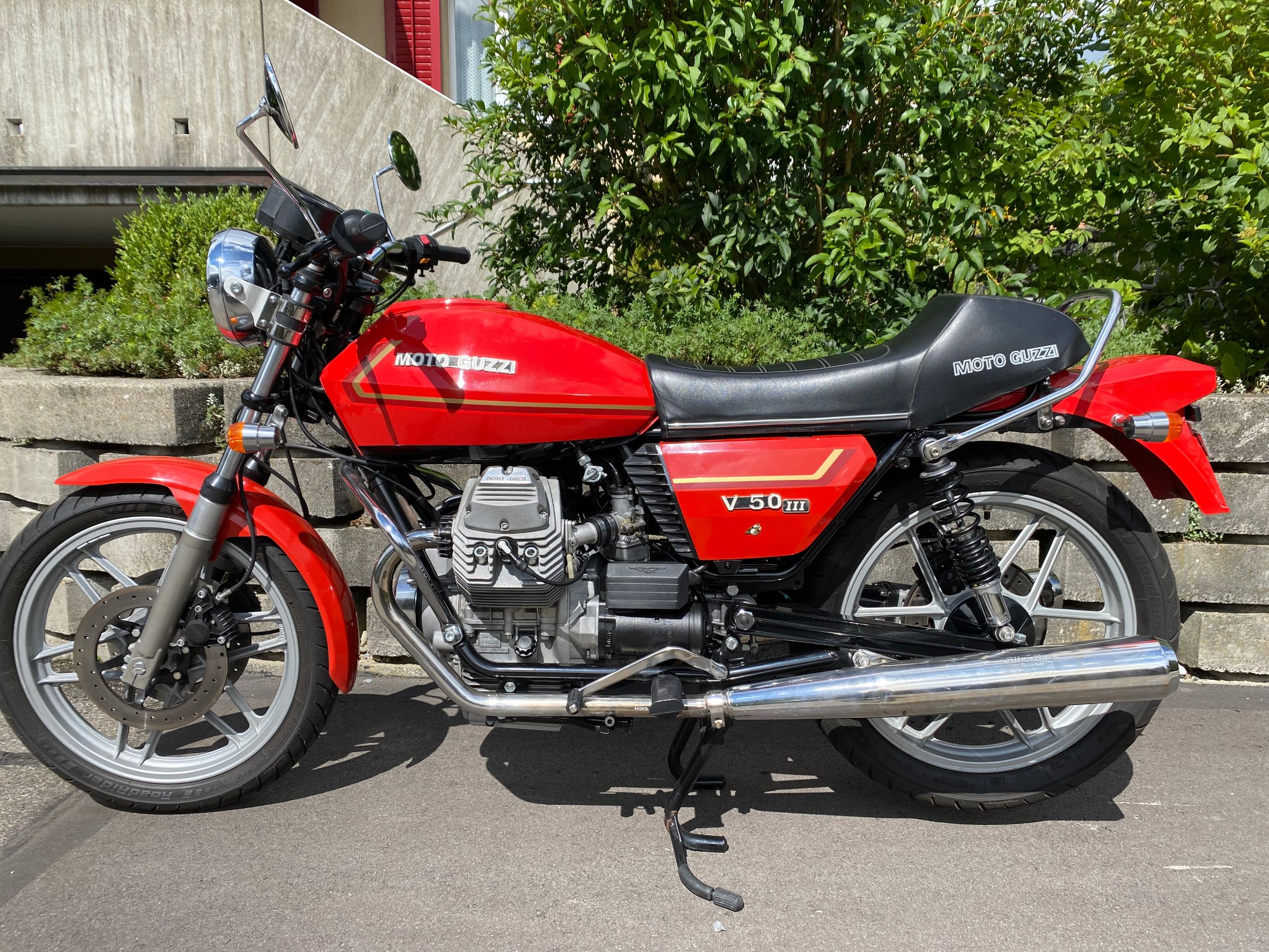 Ich verkleinere meine Sammlung an exklusiven italienischen Klassikern. Die hier angebotene V 50III wurde von mir 2017 vollständig restauriert, mit Ausnahme des roten Originallacks. Rahmen und Schwinge neu pulverbeschichtet. Ventile und Sitze neu, neue Koni 7610-Federbeine. Für 1 Person zugelassen. Schweizerische Veteranenzulassung Mai 2023. Makelloser Zustand, läuft sehr schön, leicht und handlich.Ausstattung