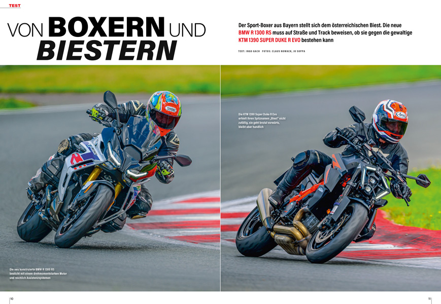 Großen Fahrten gehen mit ihnen auch – die beiden Tourensportler BMW R 1300 RS und KTM 1390 Super Duke R sind aber viel mehr für die sportlich flotte Fahrten gedacht. Welche wo und wie am besten unterwegs ist, klärt der Vergleich in MO 11+12/2025.