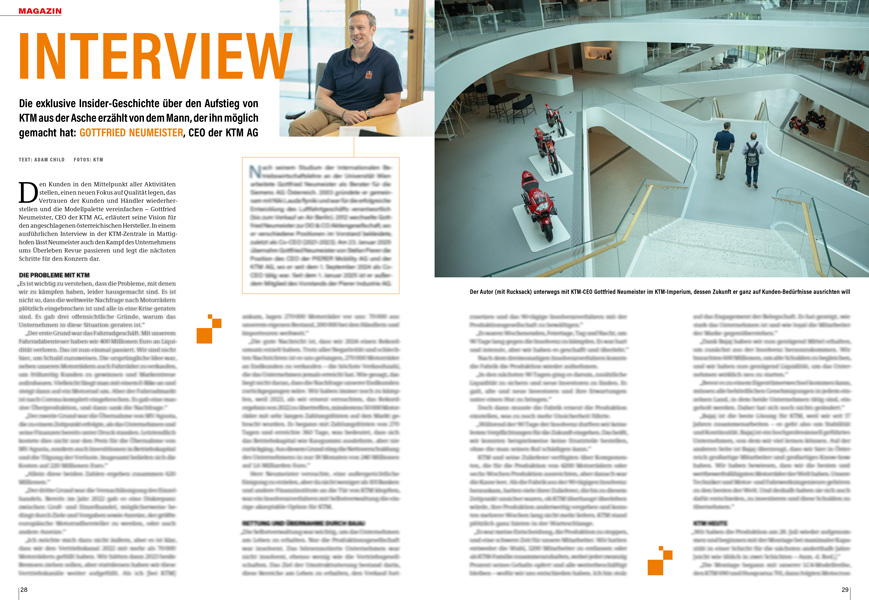 - Der neue KTM-Boss im Interview: Gottfried Neumeister ist angetreten, um KTM zu retten. Seine Pläne, Ideen und Visionen