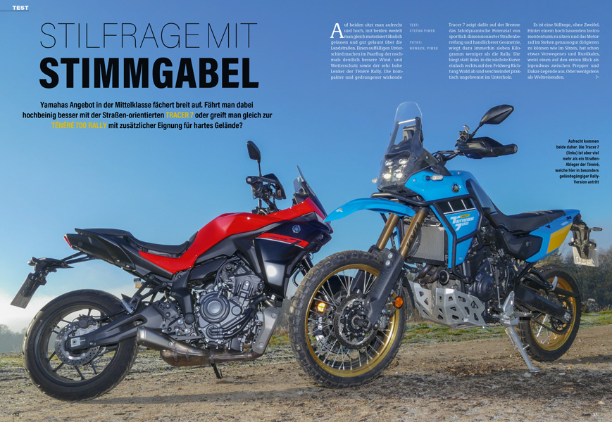- Yamaha Tracer 7 und Yamaha Ténéré 700 Rally: In der Mittelklasse besser die Straßen-orientierte Tracer oder die Ténéré mit zusätzlicher Eignung für hartes Gelände?
